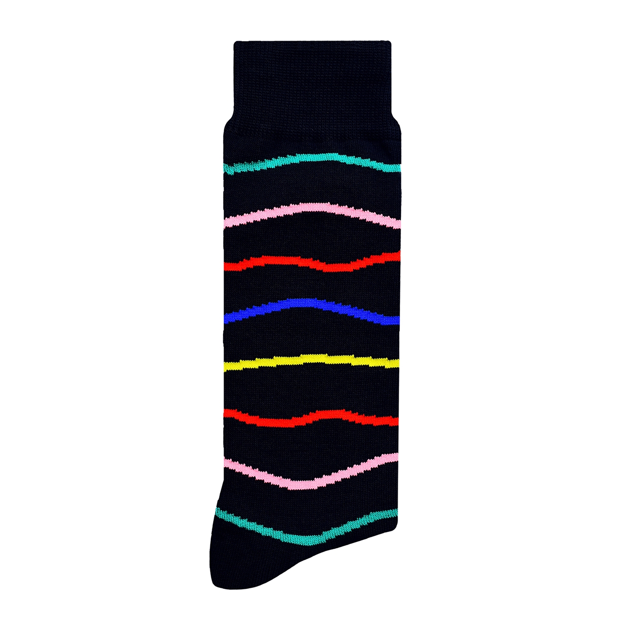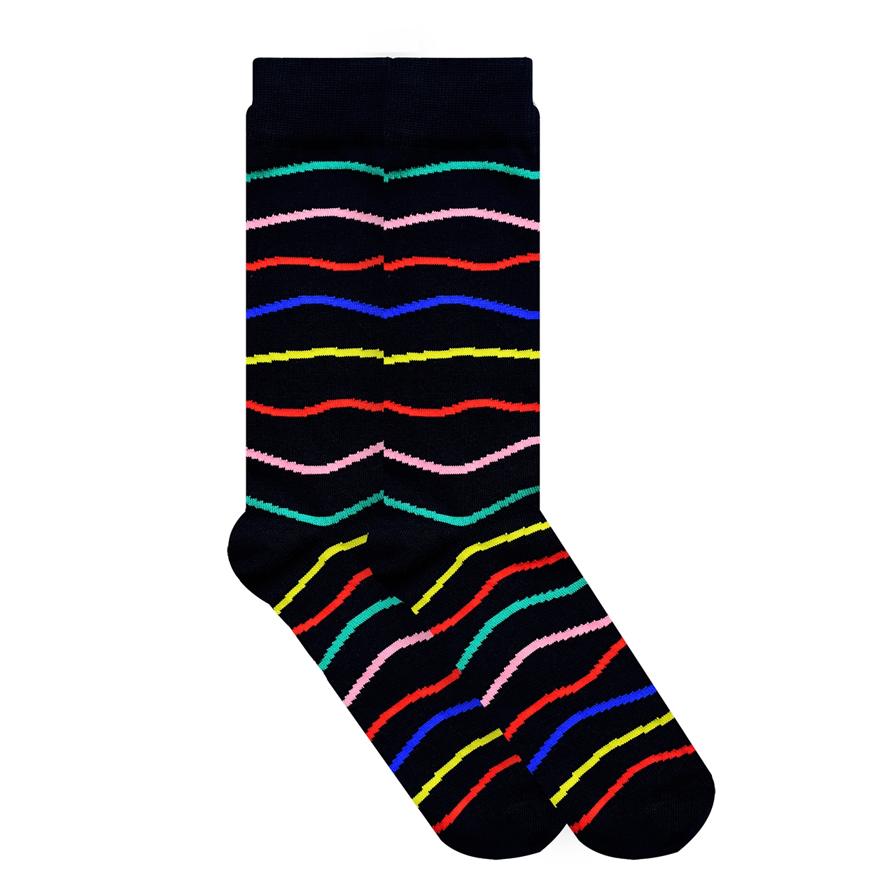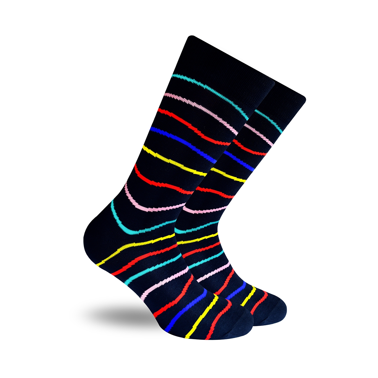 Lineas Irregulares es un calcetín divertido y original que combina lineas de colores sobre un fondo azul marino obscuro. Modernos, abstractos y con personalidad artística. Úsalos para darle movimiento a tu outfit. Minimalismo con giro inesperado.